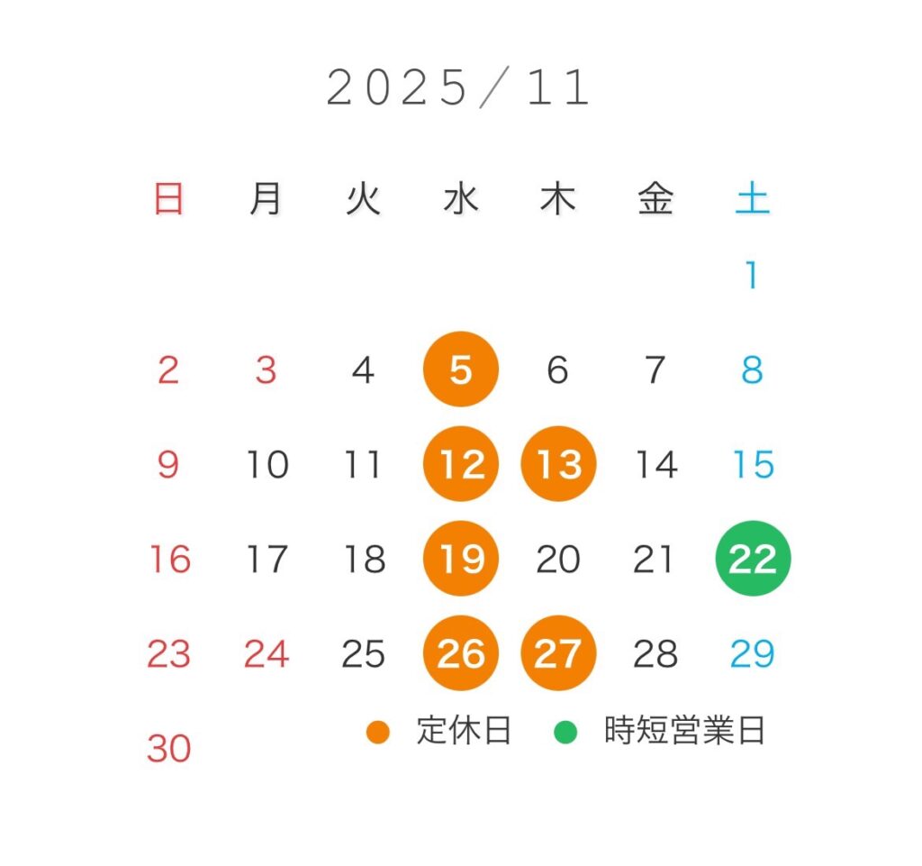 今月の営業日カレンダー